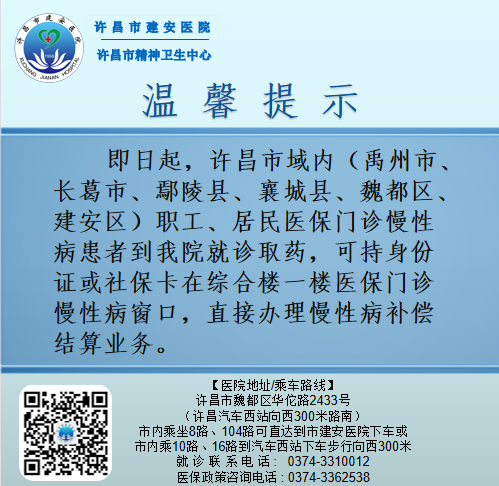 【实时动态】许昌市域内职工、居民门诊慢性病就诊可以直接办理补偿结算啦!