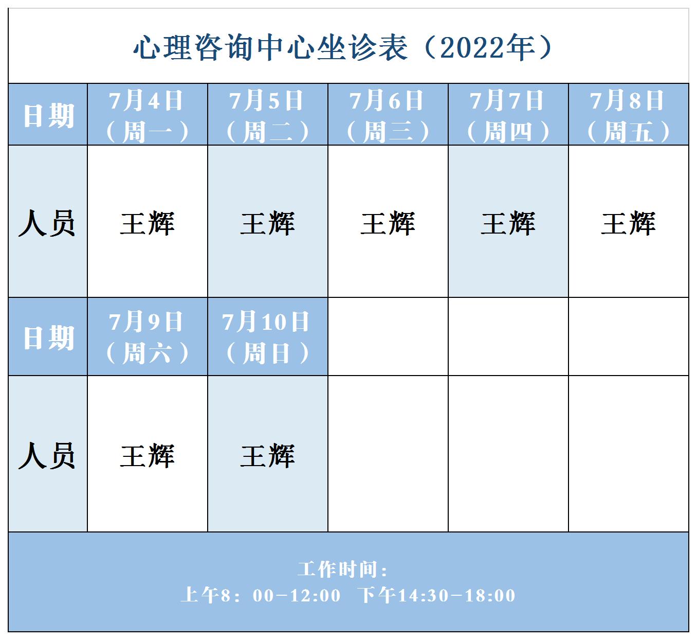 【坐诊信息】许昌市建安医院心理咨询中心坐诊表(2022年7月4日-7月10日)