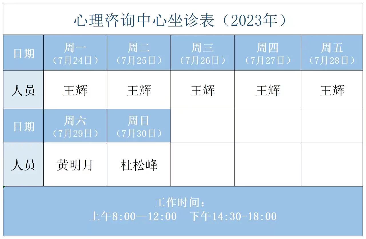 【坐诊信息】许昌市建安医院心理咨询中心坐诊表(2023年7月24日-2023年7月30日)