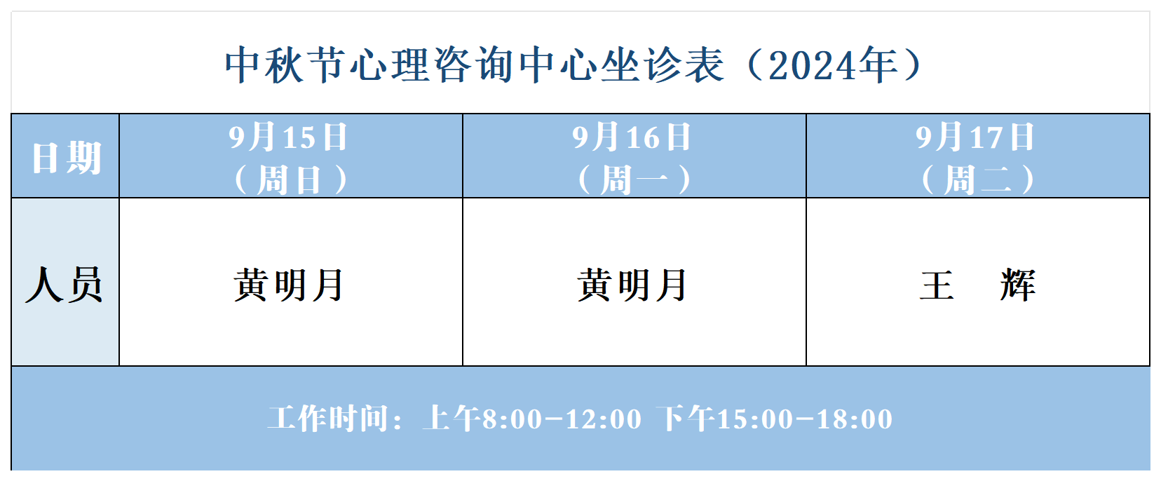 【坐诊信息】许昌市建安医院中秋节心理咨询中心坐诊表(2024年9月15日-9月17日)