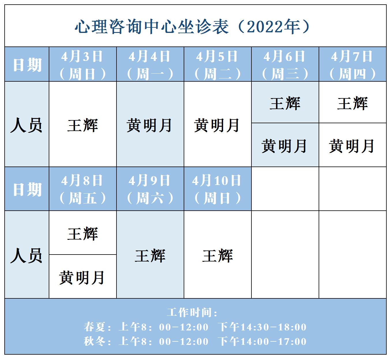 【坐诊信息】许昌市建安医院心理咨询中心坐诊表(2022年4月3日-4月10日)
