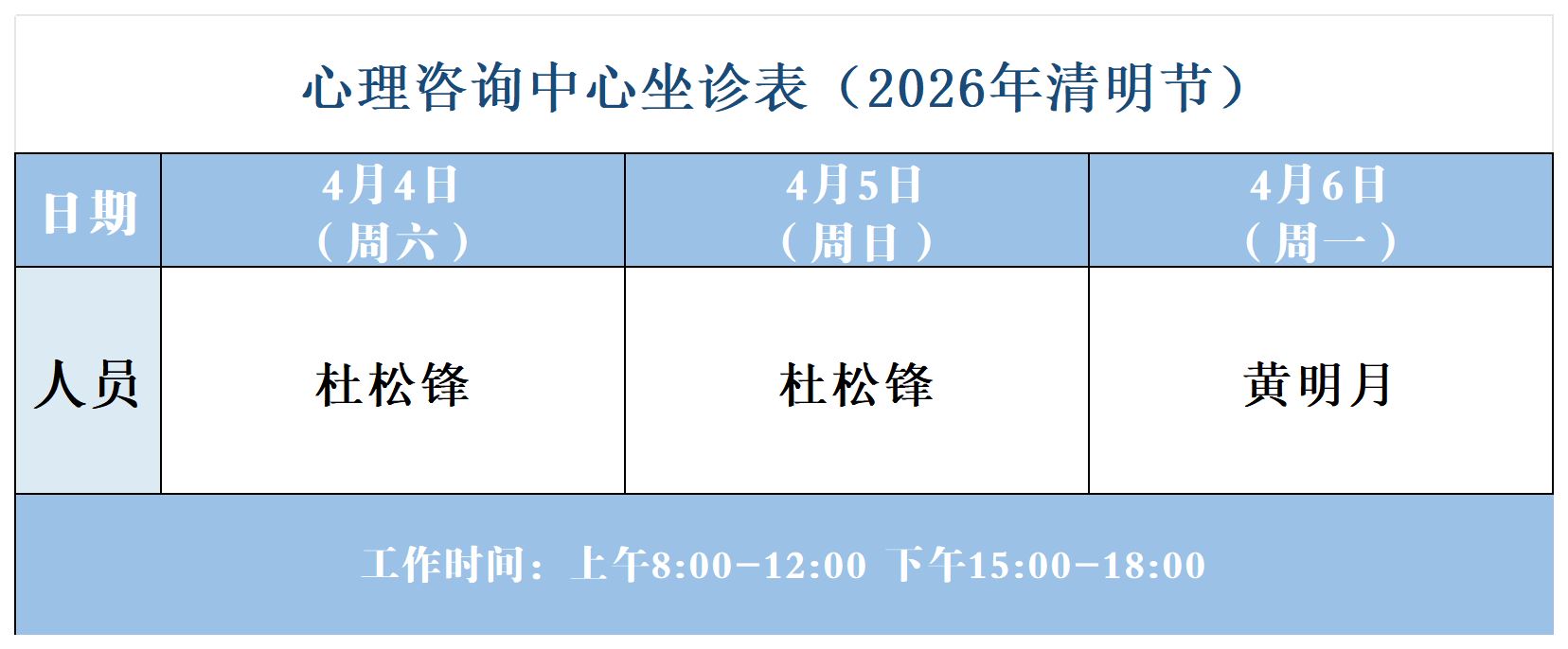 【坐诊信息】许昌市建安医院清明节心理咨询中心坐诊表(2026年4月4日-2026年4月6日)