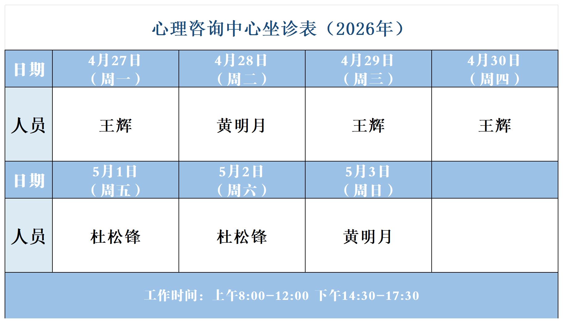 【坐诊信息】许昌市建安医院心理咨询中心坐诊表(2026年4月27日-2026年5月3日)