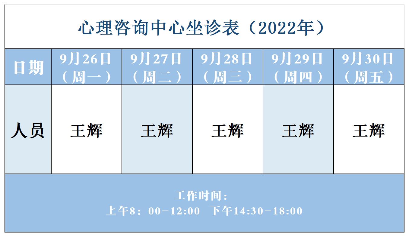 【坐诊信息】许昌市建安医院心理咨询中心坐诊表(2022年9月26日-9月30日)