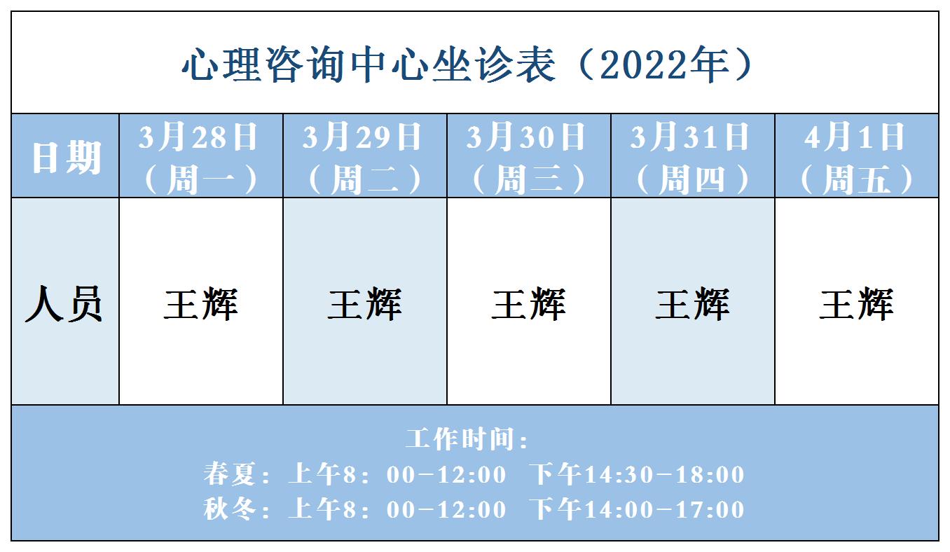 【坐诊信息】许昌市建安医院心理咨询中心坐诊表(2022年3月28日-4月1日)