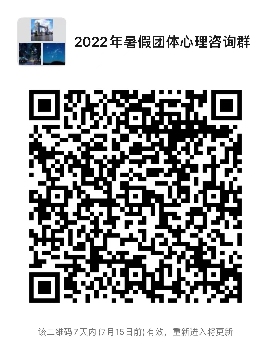 在成长的历程中,我们经常会感受到一些艰难,特别是我们走到了青春期,体验更深刻。疫情以来,青春的我们承受了更大的心理压力,我们脱离了团体和校园;疫情常态化后,熟悉的校园变得陌生,产生了焦虑、抑郁等让人烦恼的情绪,但是,也正是这些经历给了我们谦卑的机会,来经由坎坷认识生命,认识自我,及学习如何去爱。团体是一面镜子,可以从不同的人身上照见自己,团体是一个容器,可以容纳我们所有的部分,看见的或还没看见的,欣赏的或不接纳的,团体是一个练习场,带着觉察,敢于分享,你就会有意想不到的收获,在这里,每一个你将被深度的看见,在这里,每一个你都有团体个案的机会,在这里,每一个你将不断与自己的心相遇,拨开成长的迷雾。遇见自我、遇见他人、遇见幸福。让我们参加团体心理治疗,寻找青春的伙伴们!招募对象:12岁-20岁,男生女生不限;参加活动前2周无新冠肺炎中高风险地区旅居史,参加活动过程中无外出旅行计划。费用:776元(包含心理评估问卷、6次团体心理咨询、1次家庭心理讲座,原价1002元)时间:即日-7月14日报名。7月15日开团,8月5日结束。每周二、周五下午3点-4点半,共3周半。报名电话:0374-3361021 17603743936