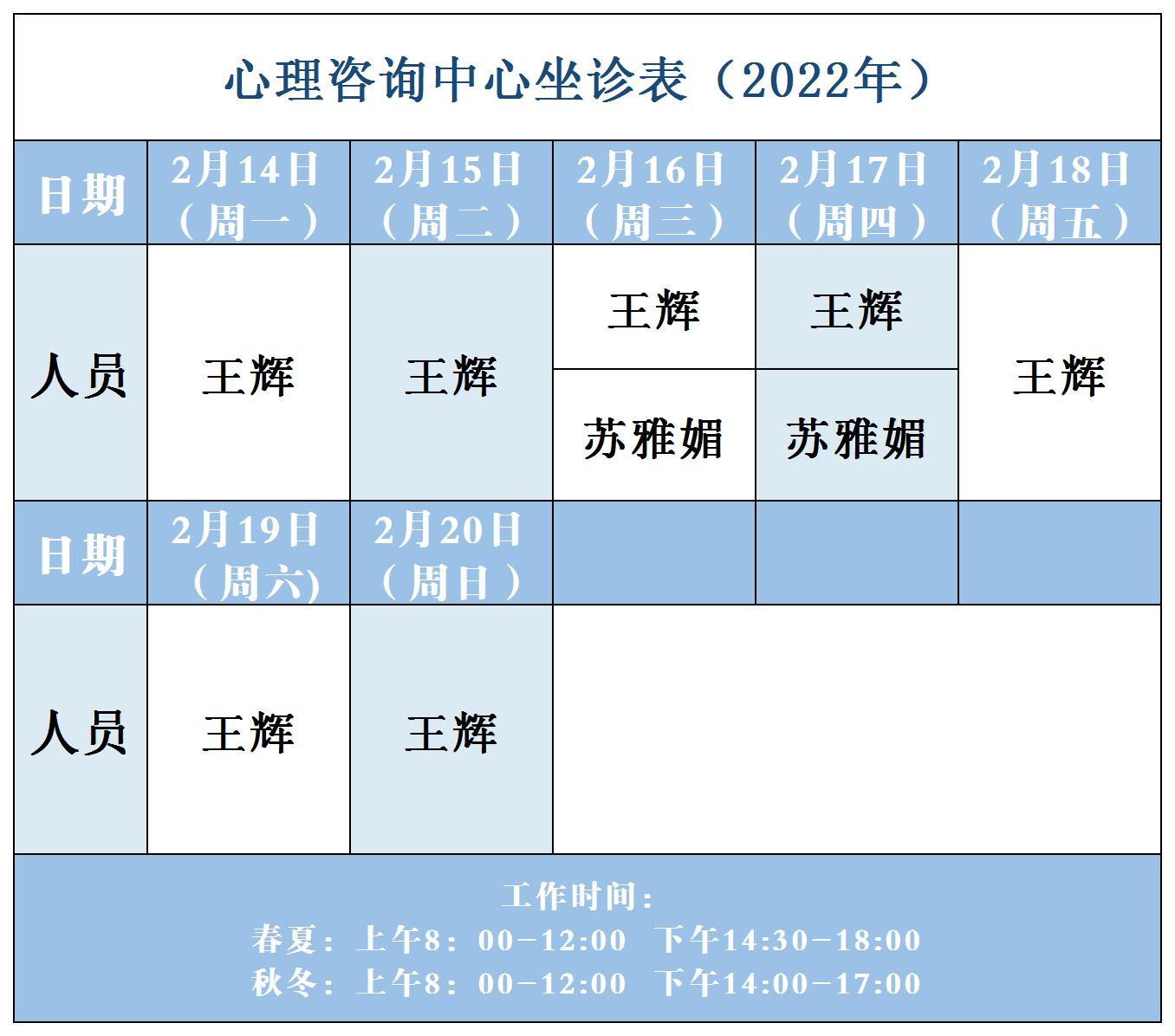 【坐诊信息】许昌市建安医院心理咨询中心坐诊表(2022年2月14日-2月20日)