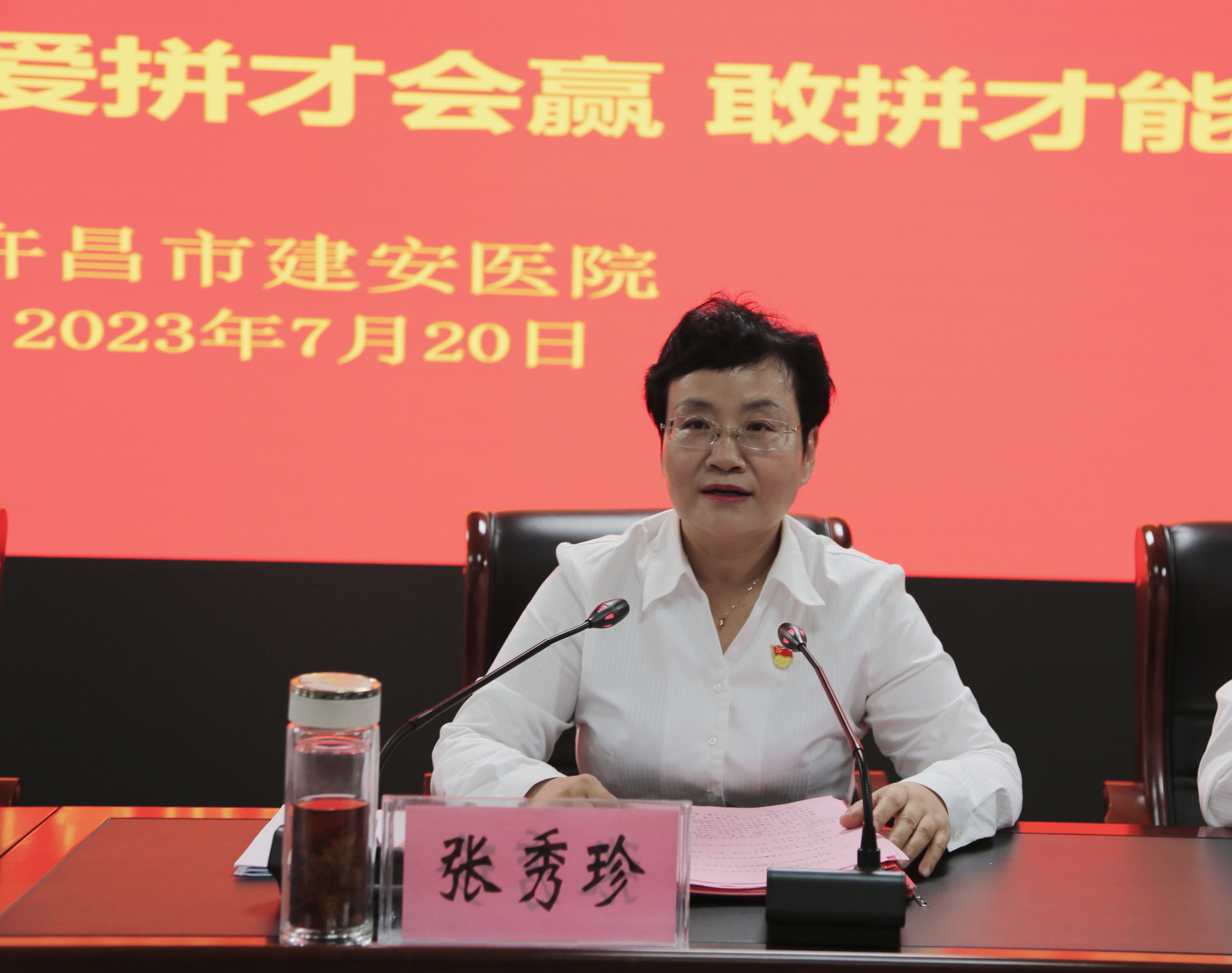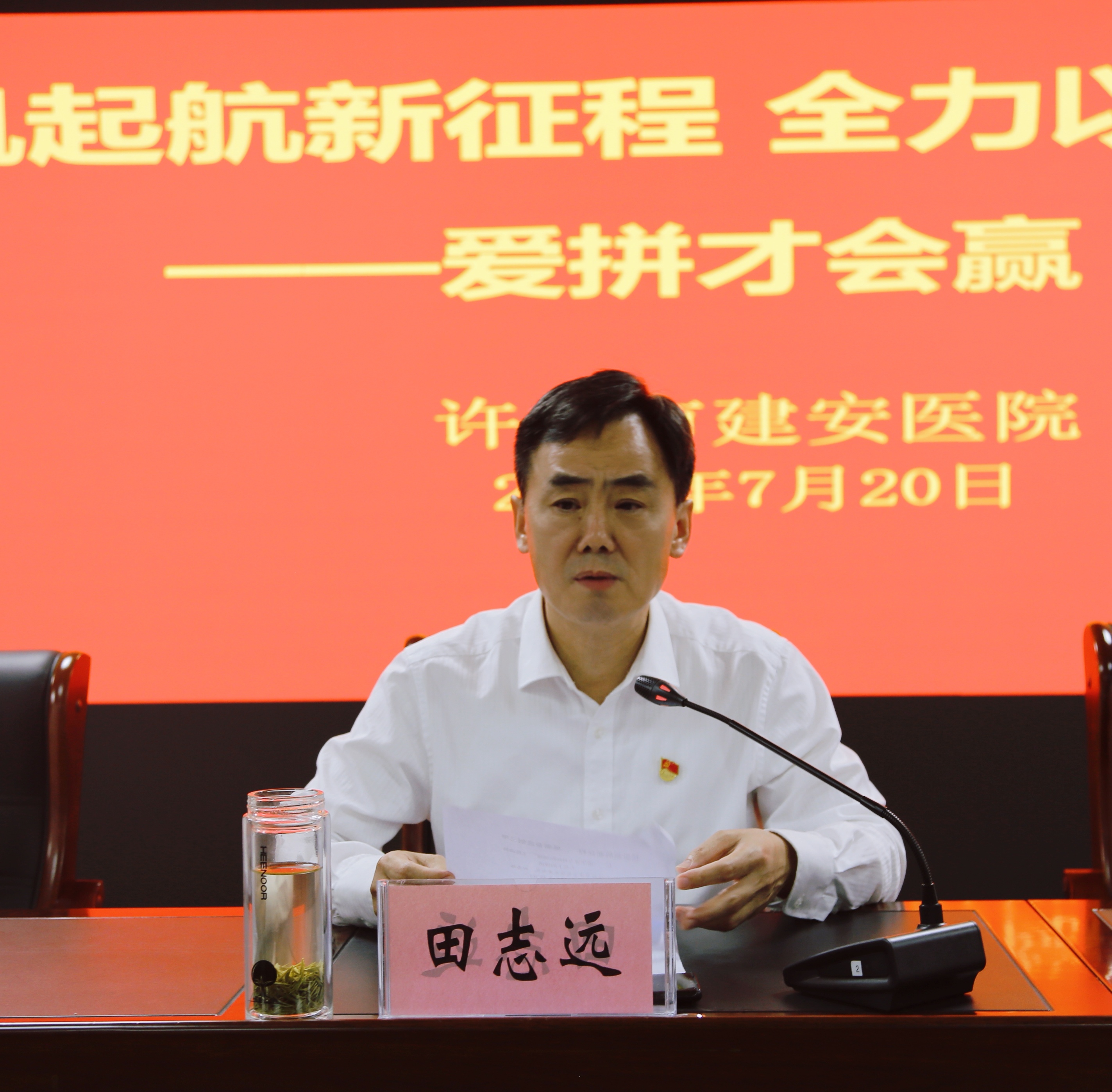 7月20日,许昌市建安医院召开三级甲等专科医院创建启动大会,号召和动员全院干部职工以更加昂扬奋进的精神状态,全力以赴推动医院“三甲”创建工作,坚决打好打赢“三甲”创建攻坚战。院领导班子成员及全院干部职工参加。