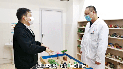 在这里,记者体验了一把沙盘游戏,最后摆出了一个有人、有花草树木、有桥、有亭子和动物的田园牧歌场景。摆完后,如同刚刚做了一个游戏,又回到小时候心无旁骛玩玩具的场景,内心非常放松、快乐。
