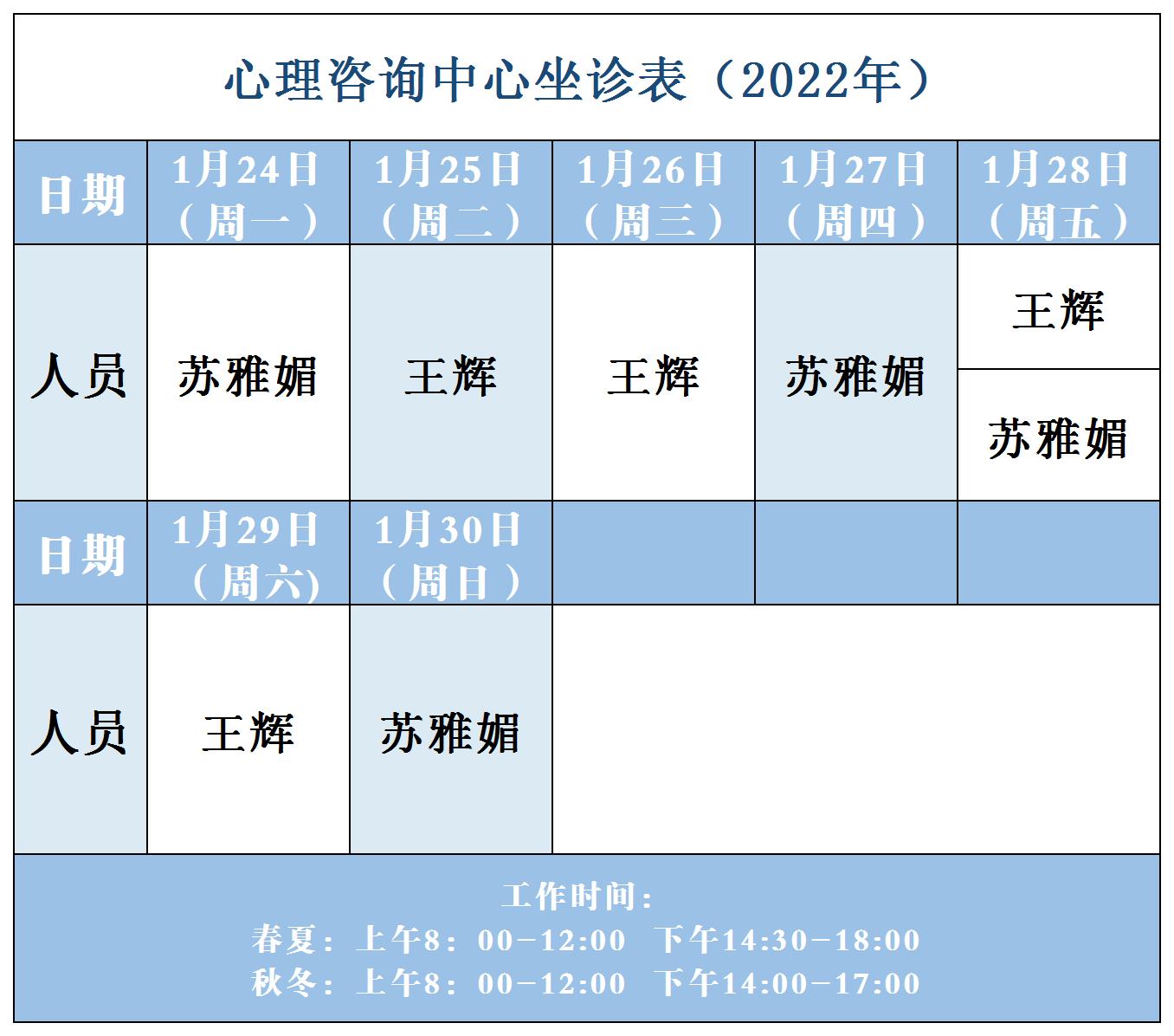 【坐诊信息】许昌市建安医院心理咨询中心坐诊表(2022年1月24日-1月30日)
